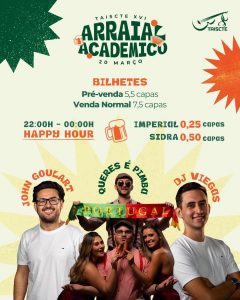 O Primeiro Arraial Académico TAISCTE surgiu numa série de iniciativas para dinamizar e dar a conhecer a TAISCTE dentro do meio académico, assim como obter fundos para o Lisboa Eterna. Inserido no tema de Santos Populares, o Arraial Académico contou com muita animação a partir das 18h no Pátio do ISCTE assim como animação a cargo de uma banda convidada “Vitor&Ginja”.